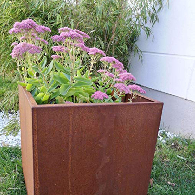 Compact Square-Edge Planter-Durable Weathering Steel Construction for Modern Home & Landscape Decor