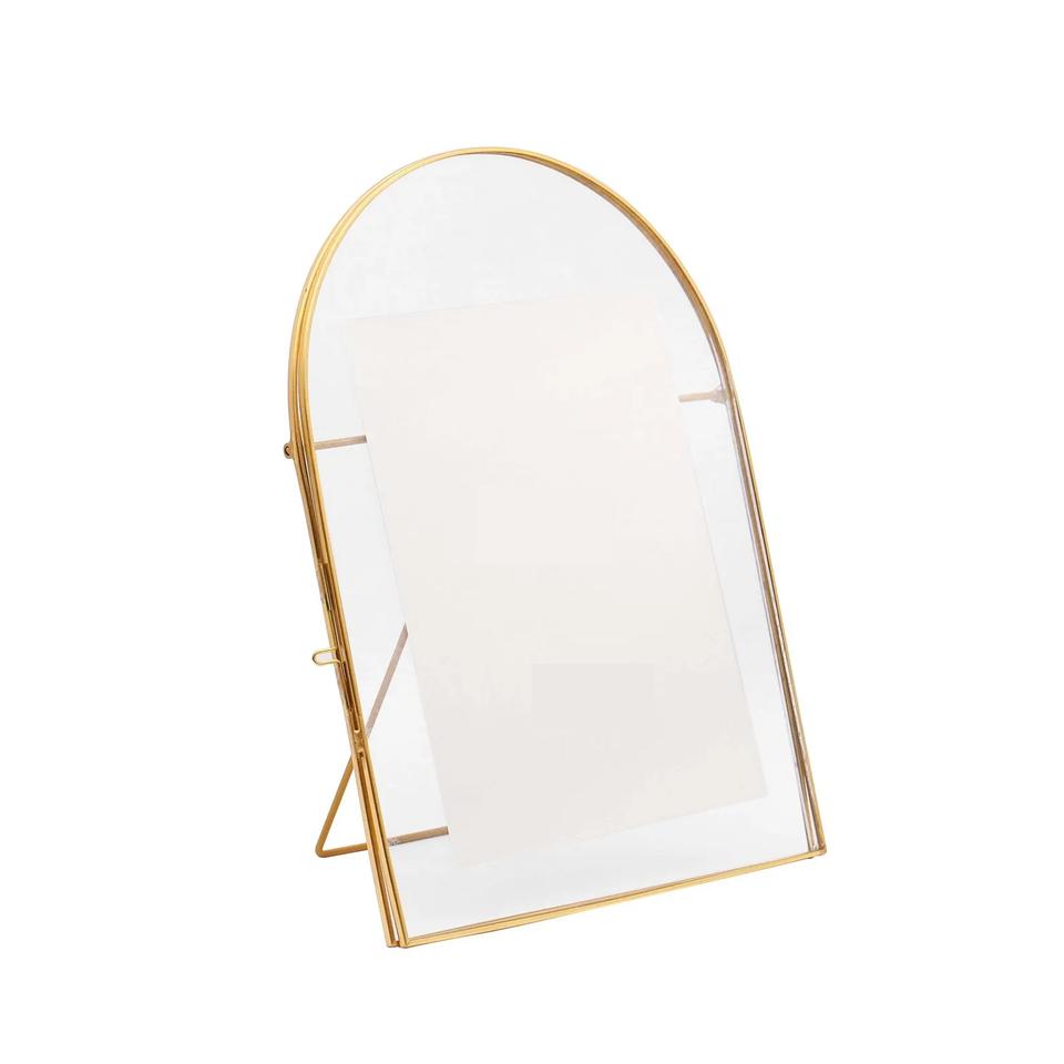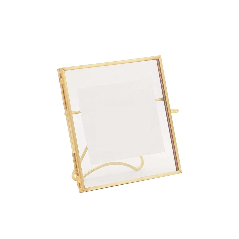 Compact Square Glass Photo Frame, Freestanding Gold Metal Tabletop Display Frame for Small Prints, Keepsakes & Gifts
