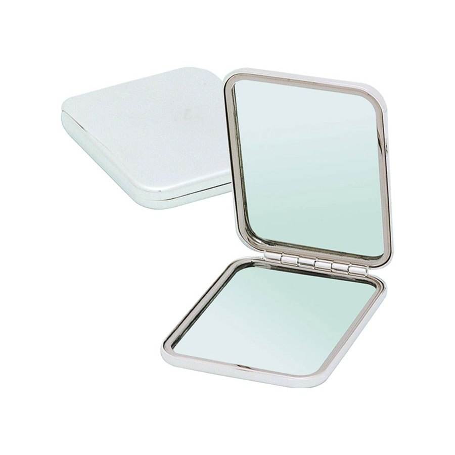 Compact Square Makeup Mirror 45x60 Mm Dual Side With Silver Frame For Travel And Daily Use