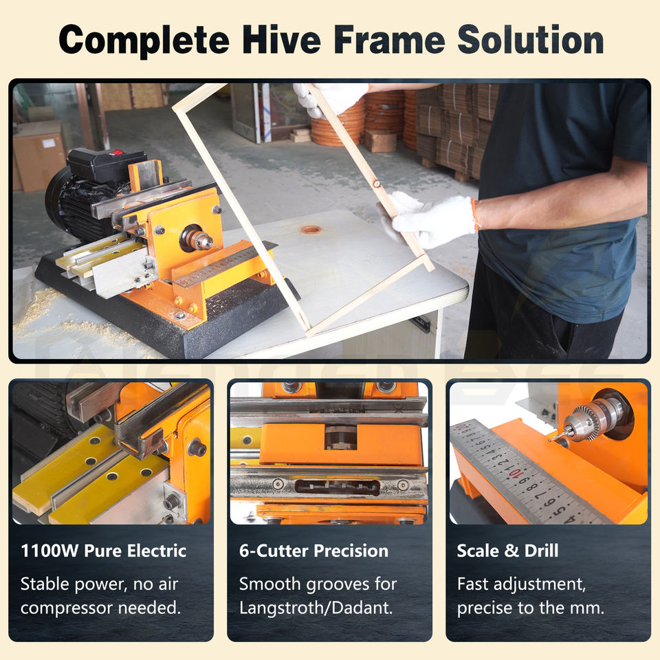 New Compact Stainless Steel Langstroth Beehive Frame All-in-One Machine 1100W Pure Electric Frame Cutter Driller 1 Year Warranty