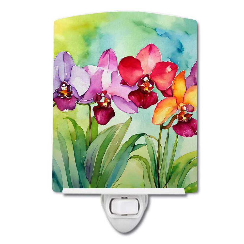 Compact UL-Certified 6x4x3 Multicolor Ceramic Night Light New Orchids Watercolor Design for Bedroom Bathroom Hallway Kitchen
