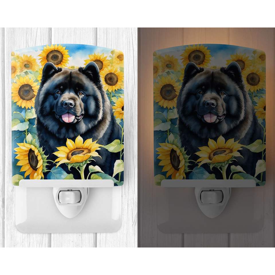 Compact UL-Certified Chow Chow Sunflowers Ceramic Night Light Multicolor for Bedroom Bathroom Nursery Hallway Kitchen 6x4x3 Size