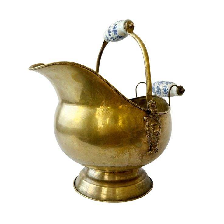 Compact brass coal bucket with sleek finish and small size perfect for apartments tiny homes or limited hearth space
