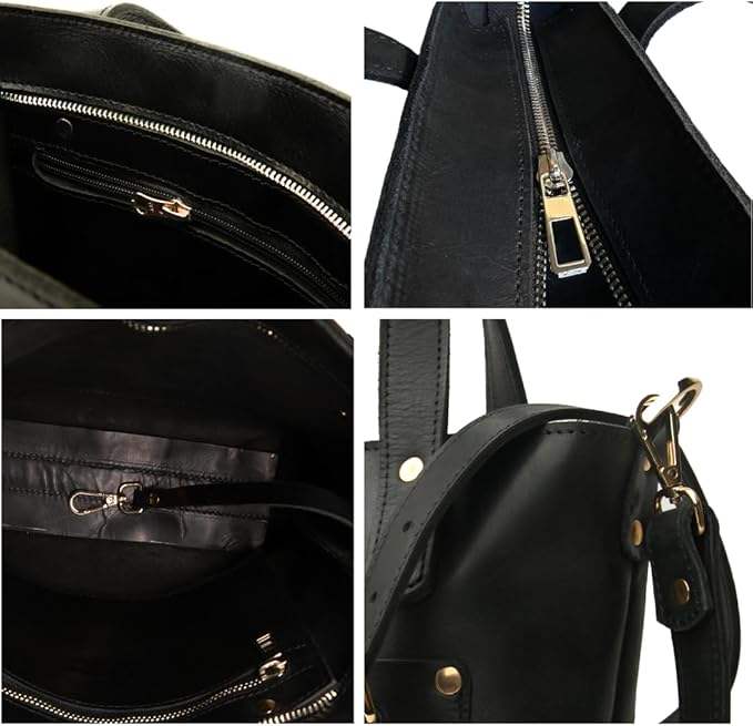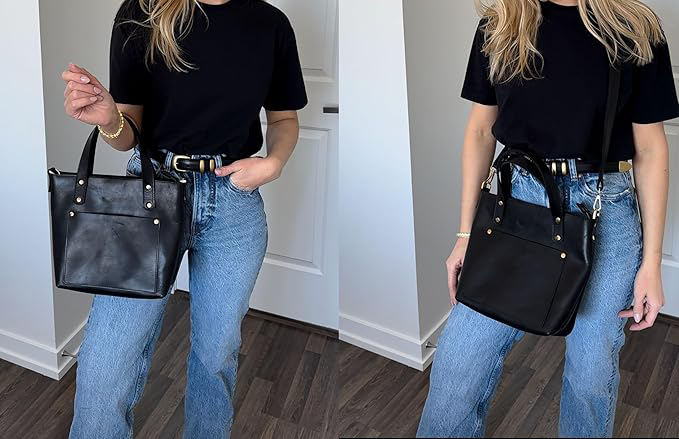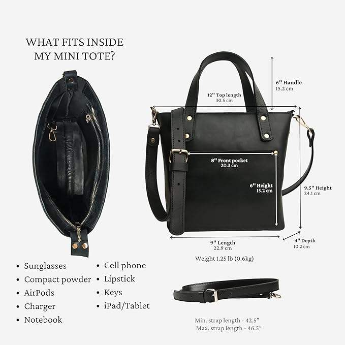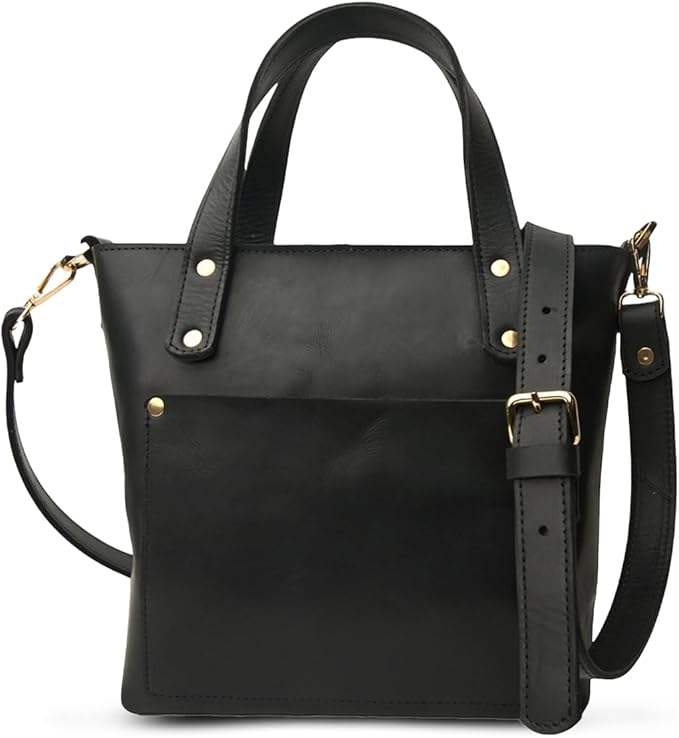 Companion Travel Handcrafted Mini Tote Bag With Removable Strap Premium Full-grain Leather and Zipper Compartment