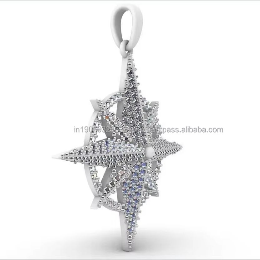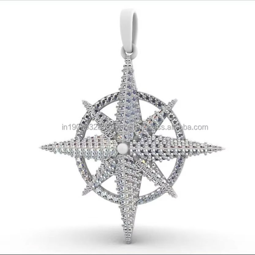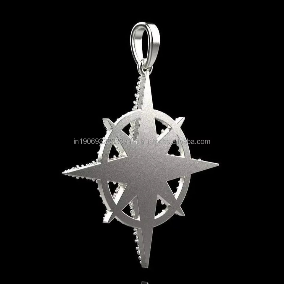 Compass Star Luxury Style Moissanite Diamond Iced Out 925 Sterling Silver Pendant Men Statement Necklace Hip Hop Bling Jewelry