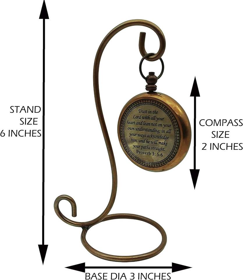 Compass with Display Stand Unique Uplifting Engraved Compass |Brass Antique Compass W/Antique Display Stand Custom Gift Business