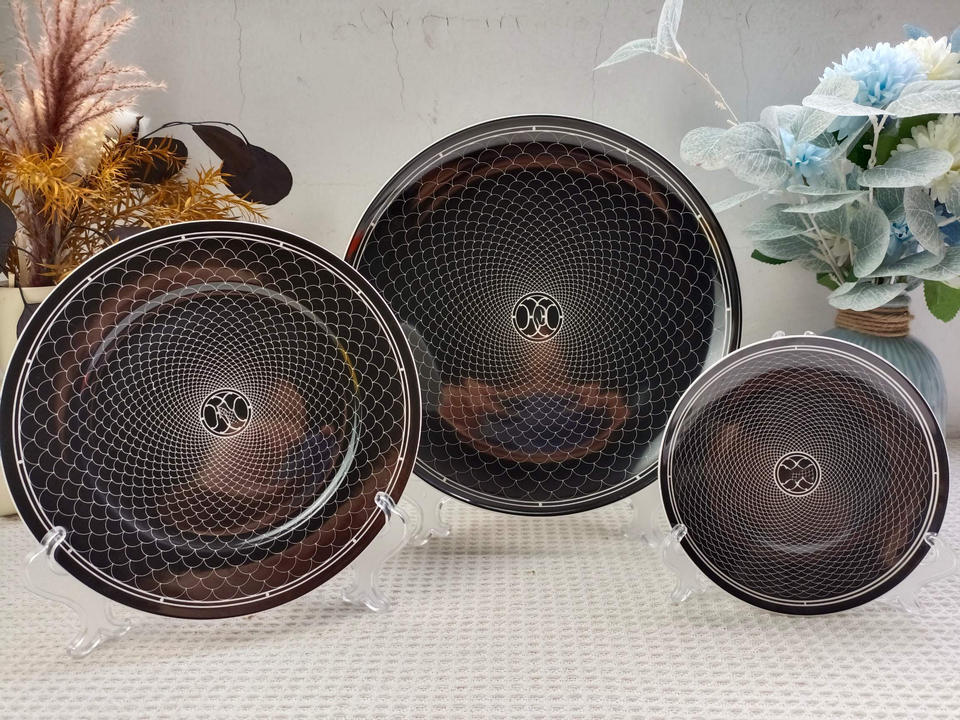 Competitive Eco-Friendly European Style Black Bone China Gold Inlay 3-piece Dinner Plate Set