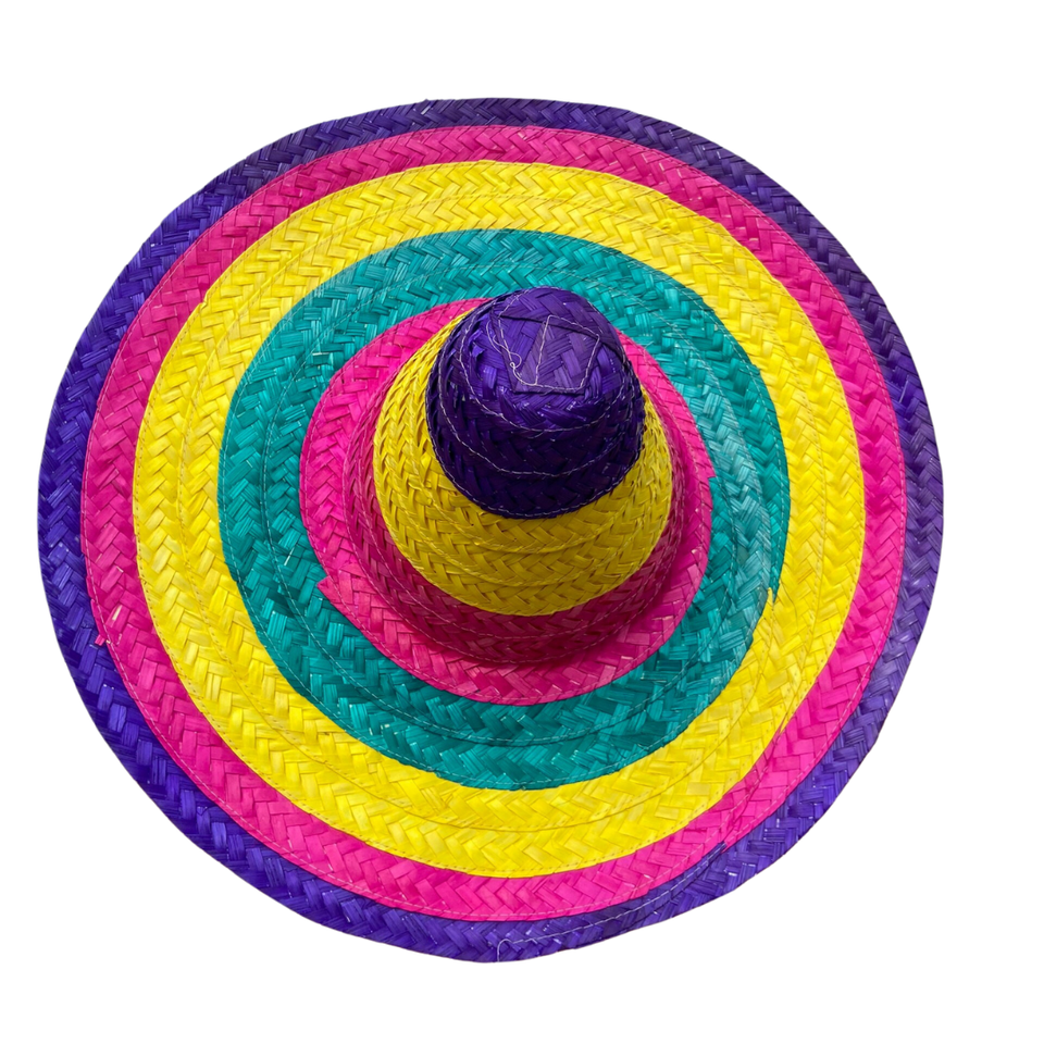 Competitive Price Handwoven Colorful Green Mexican Sombrero Straw Hat with Moustache Cigar Bandit Summer Fancy Dress Costume