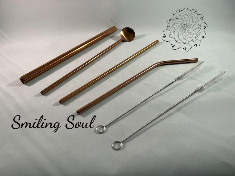 Complete Copper Drinking Straw Set with Cleaning Brushes Smooth Finish Reusable Eco Friendly Stylish Bar Home Travel Use