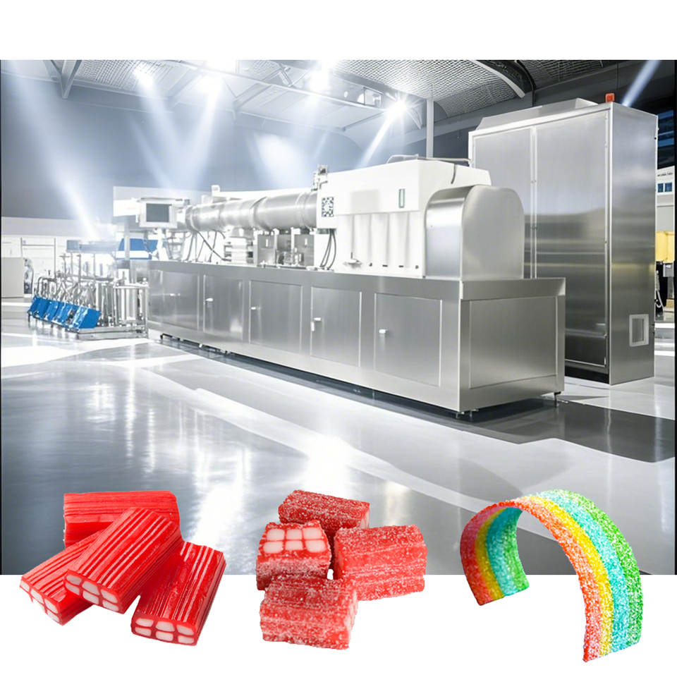 Complete Halal Licorice Candy Sour Belt Candy Extruder Machine Rainbow Sour Belt Making Line for Candy Factory