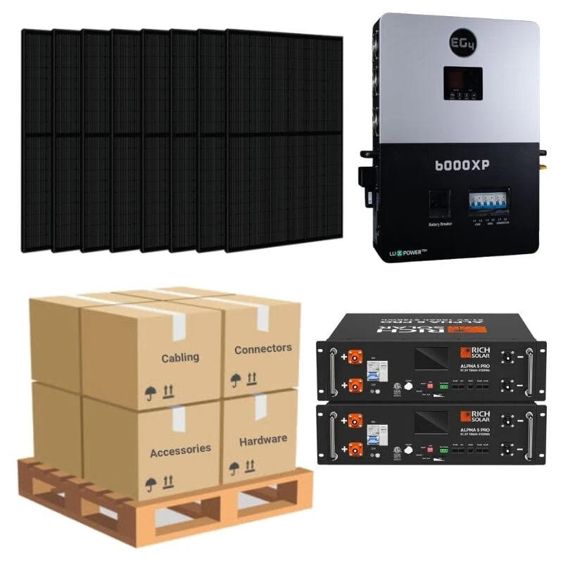 Complete Home Use Solar Power System 3.28kW 6kW 10.28kWh-14.3kWh Lithium Battery Bank + 8 X 410W Monocrystalline Panels CE Free