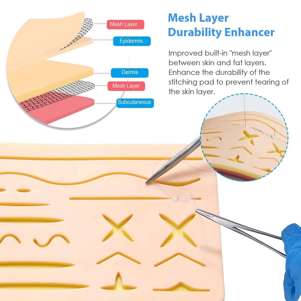 Complete Suture Practice Kit 3-Layer Silicone Pad Stainless Steel Instruments Manual Class I Medical Training for Students