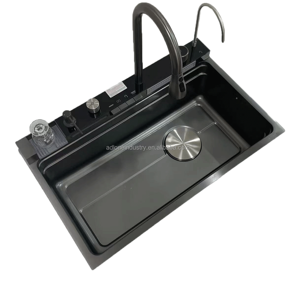 Complete Whole Set Waterfall Kitchen Sink Stainless Steel Sinks Big Single Bowl With Dish Rack Under Mount Sinks