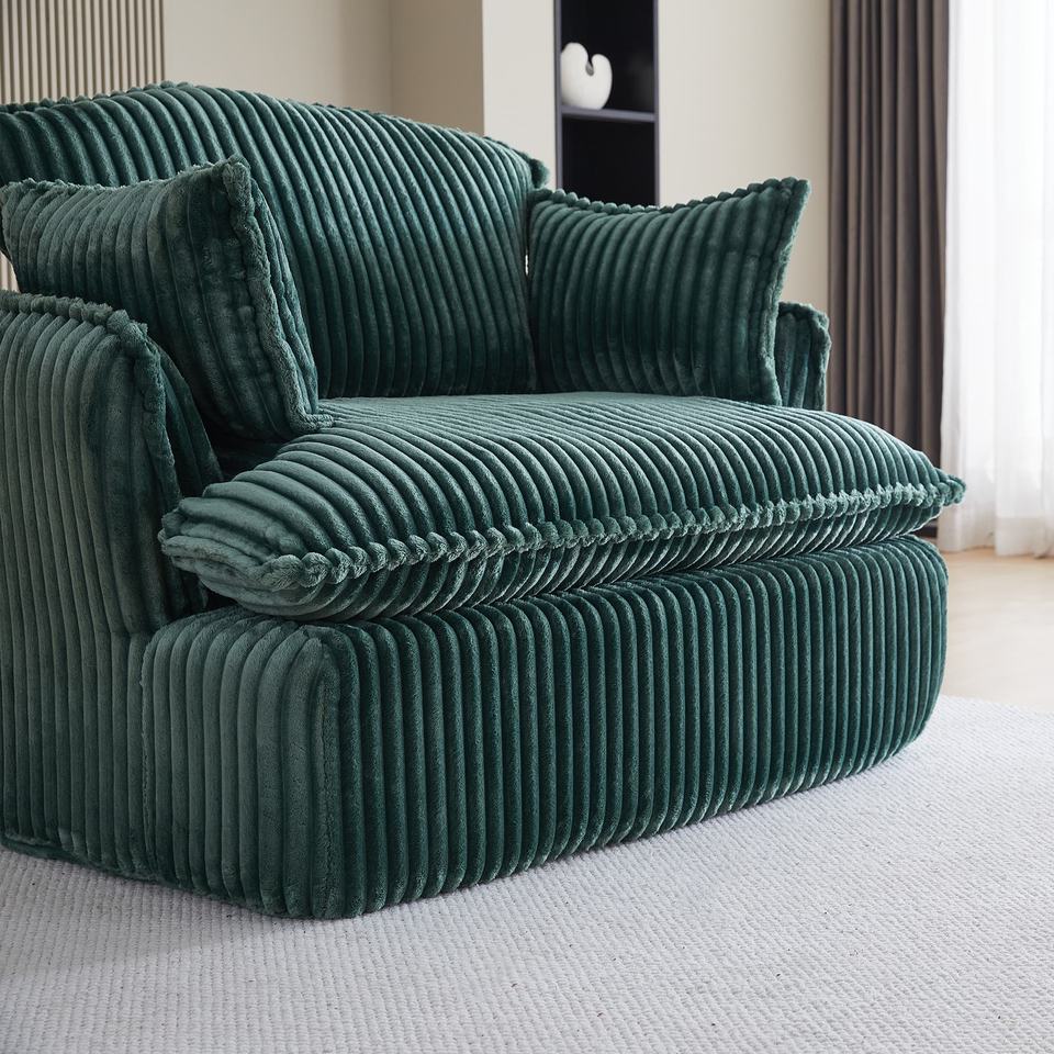 Compressed Chair with Ottoman, Cloud Corduroy Sofa Chair Sleeper Chair for Living Room Bedroom Balcony Reading Room, Green