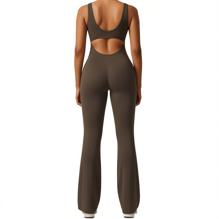Women's Plus Size Summer Yoga Jumpsuit With V-Back Hollow Design Breathable Spandex Nylon Full Length Activewear Bodysuit
