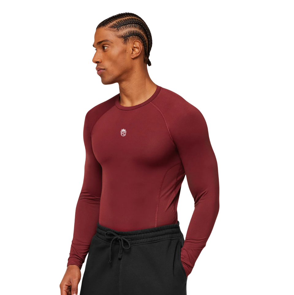 Compression Fit Long Sleeve Tshirt in Red for Men Gymwear Activewear and Workout Apparel with Stretchable Breathable Fabric