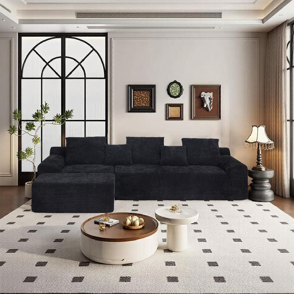 Compression Sectional Convertible Set Comfy Chaise Boneless L-Shape Sofa Deep Seat Eco-Friendly Durable Modular Apartment