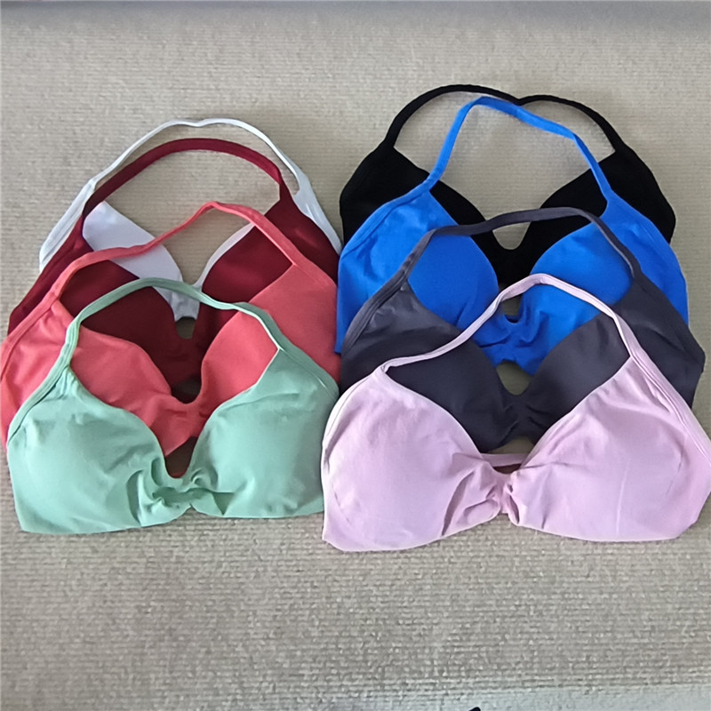Compression Strappy Bra Gym Top Women High Support Thin Strap Halter Sports Scrunched Seamless Bras Scrunch Workout Yoga Bra