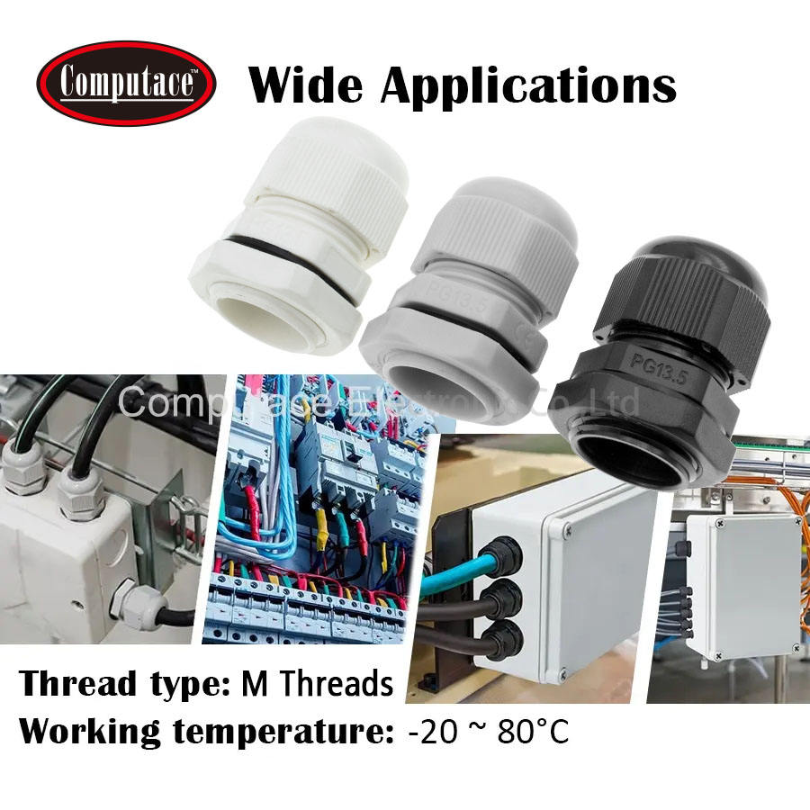 Computace ZSC3016 IP68 Waterproof PA66/NBR Nitrile O-Ring Electric Equipment Cable Gland PG7/9/13.5/16/21/25 Black