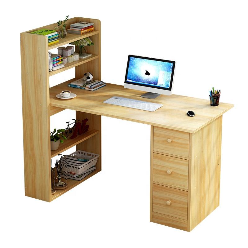 Computer Desk PC Corner Table with Bookcase Office Desks 3 Drawers Study Desk for Home Writing Table