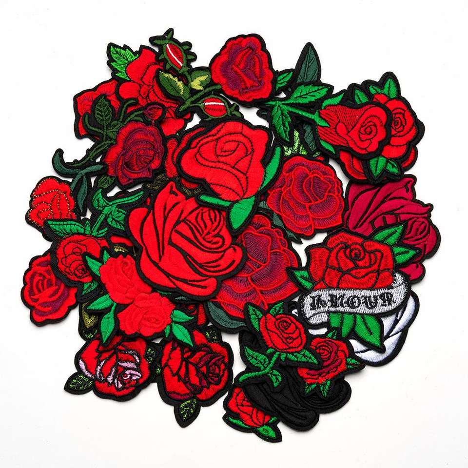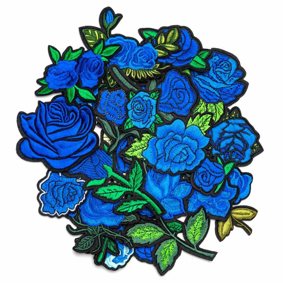 Computer Embroidery Blue pink Red Fairy Rose Flower Embroidery Cloth Patch for Multi-Use Clothing Accessories