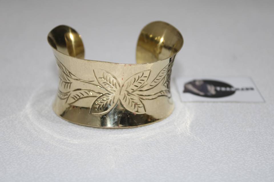 Concave Brass Cuff Floral Hand Carved Arm Cuff Woven Bracelet Etching Gold 18cm Unisex Tradnary