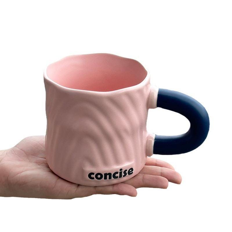 Concise Ceramic Mug Pink Blue Handle Letter Print Minimalist Design Office Home Use Gift Cup