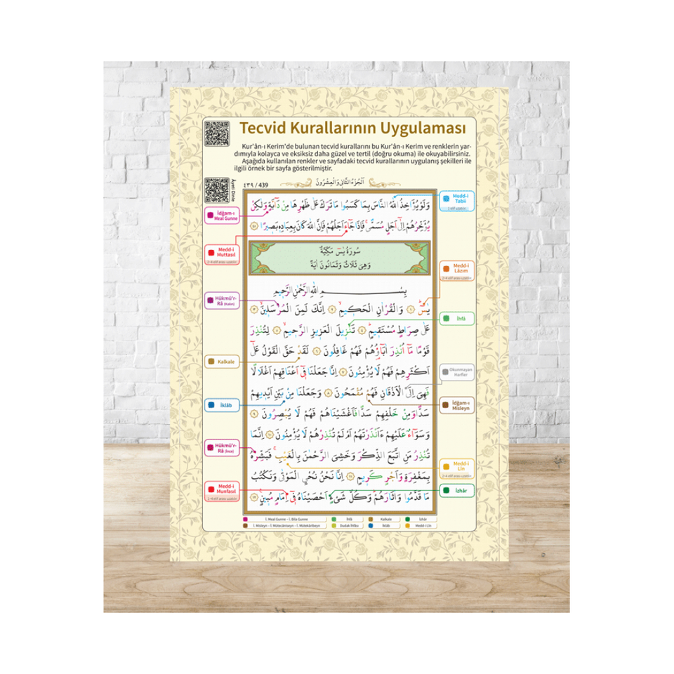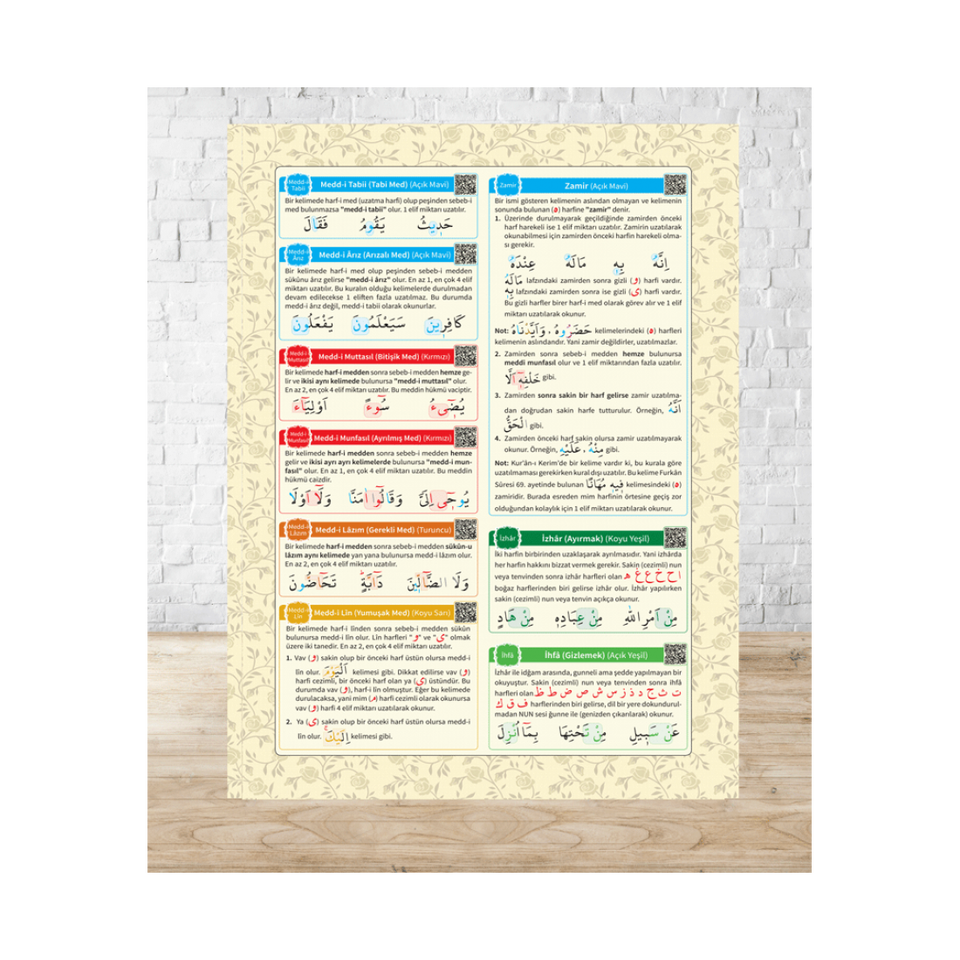 Concise Tajweed Rules Chart for Language Learning Code 129 Cream Color 16.5x24cm