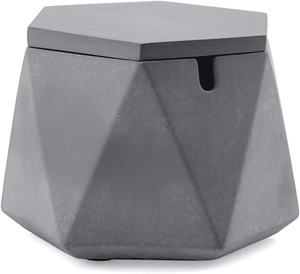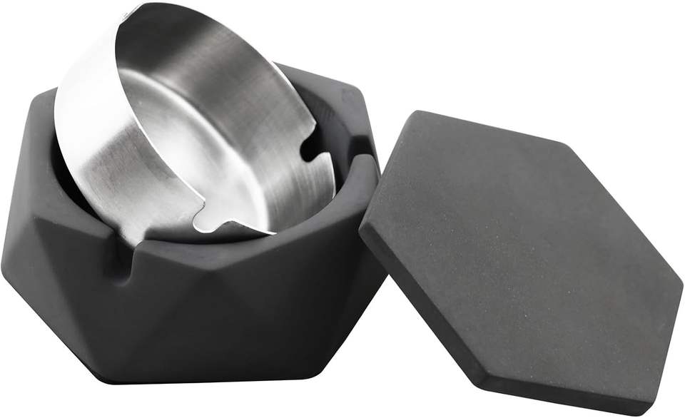 Concrete Ashtray with Lid & Stainless Steel Ashtrays, Cement Ash Tray Smoking Holder Indoor Smokeless Outdoor Windproof.