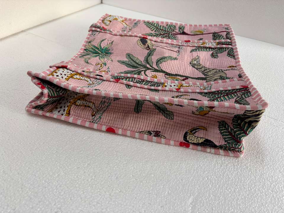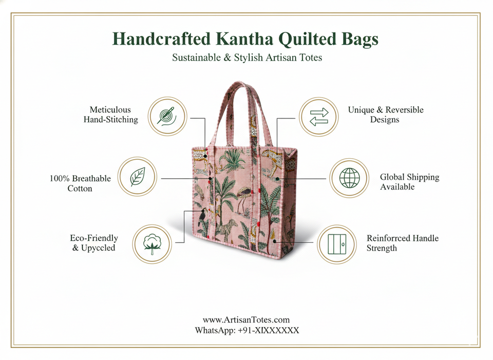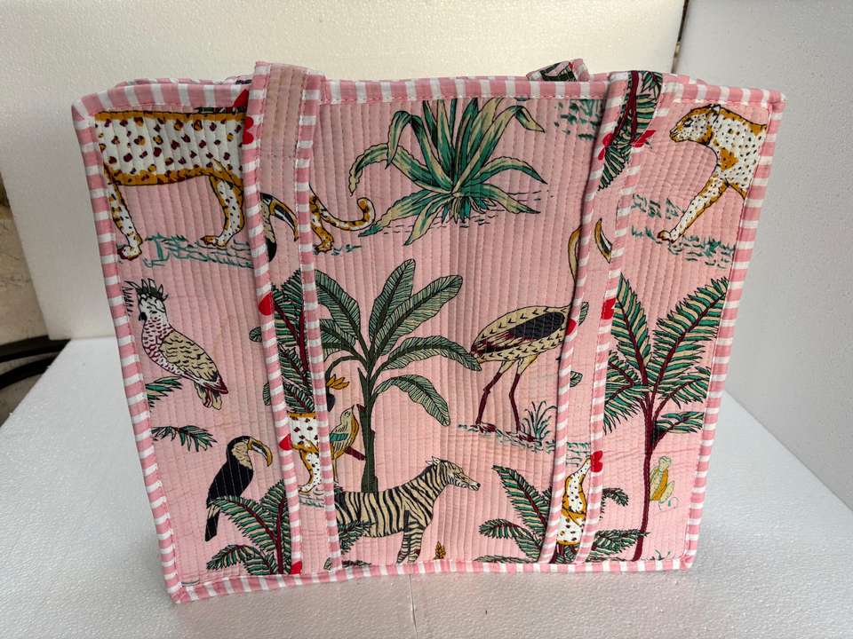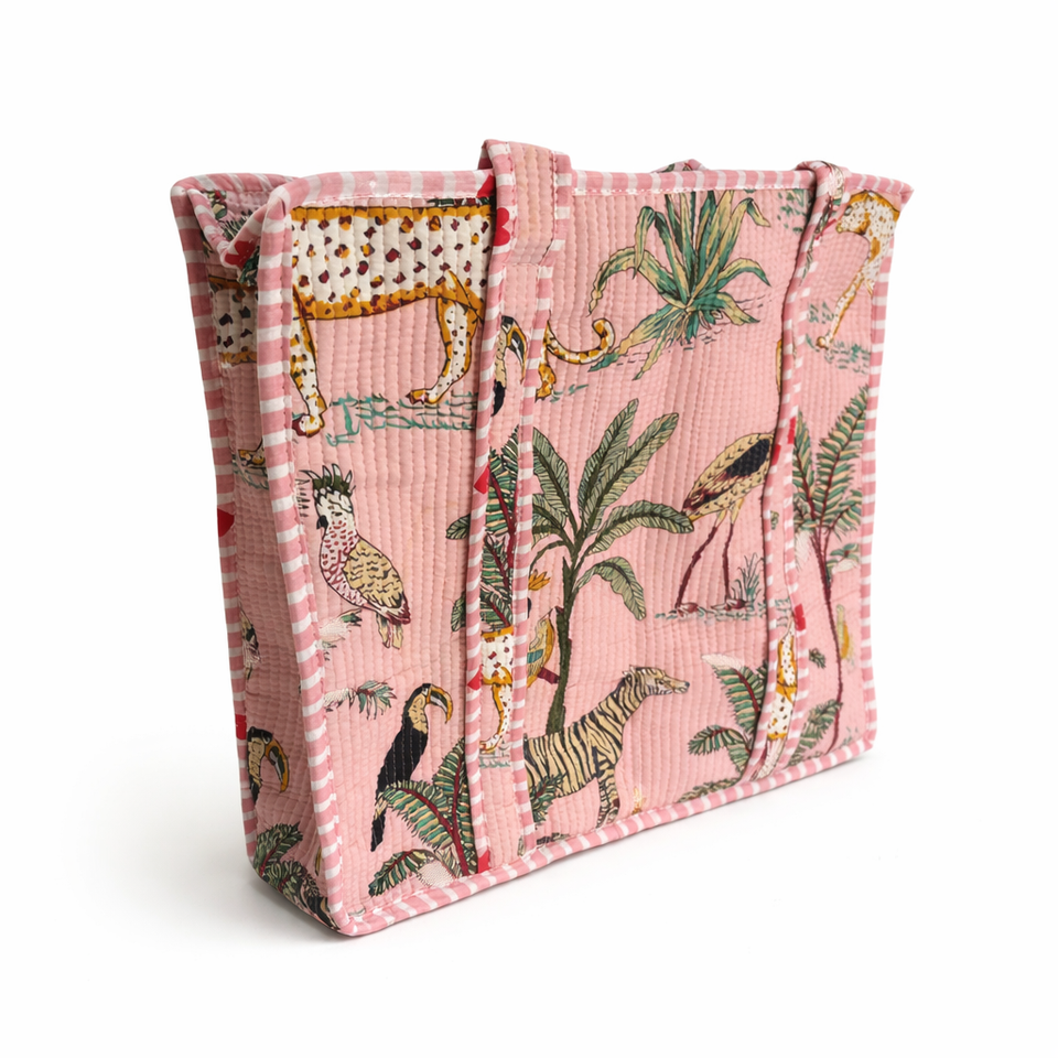 Conifer Handmades Light Floral Kantha Quilted Sustainable Cotton Tote Vintage Indian Embroidery Customized Color Letterpress