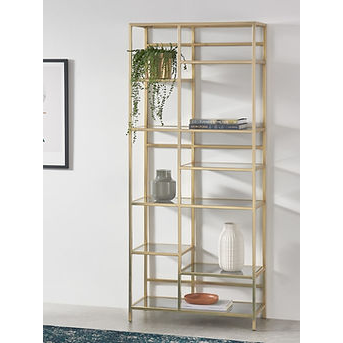 Connelly 185x80x35 cm Metal Bookcase with Glass Shelf Gold/Chrome/Black Different Design Unique Bookshelves & Bookcases