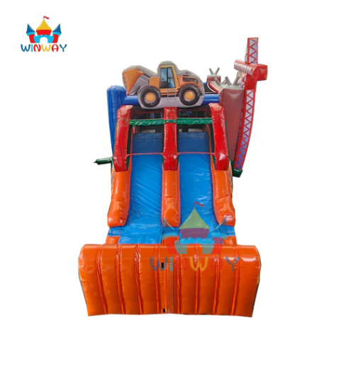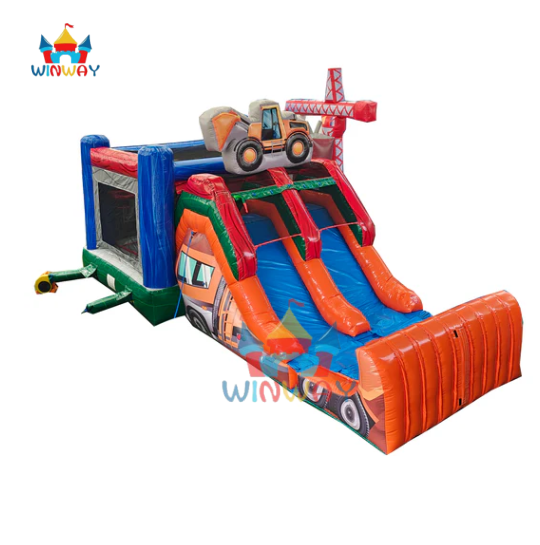 Construction Truck Themed Inflatable Castle Combo, Dual-Lane Kids Water Park Slide with Pool for Summer Outdoor Fun