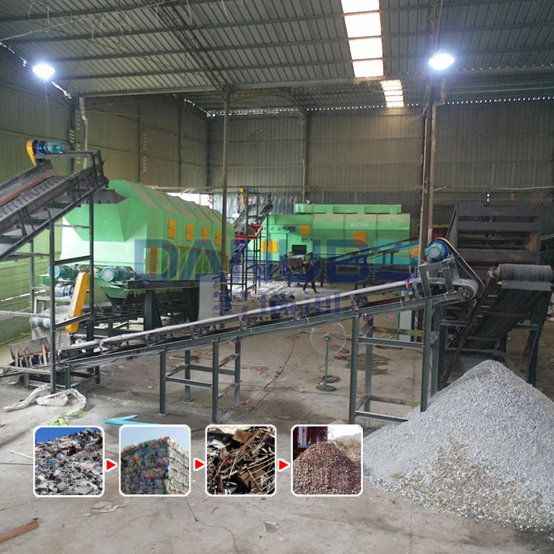 core components:Jaw crusher, Trommel screen, Air separator, Magnetic separator, Shredder, Waste baler, Conveying machine