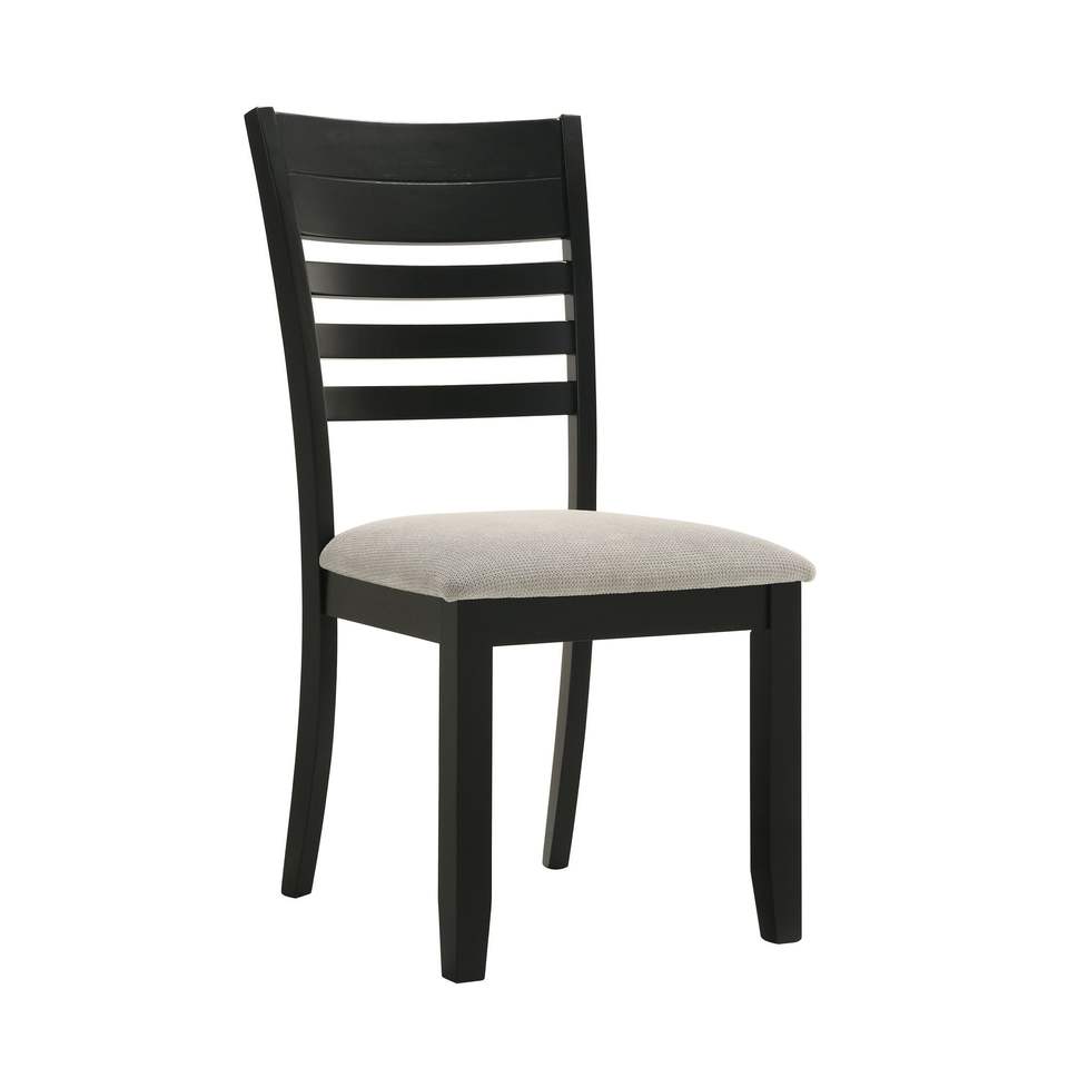 Contemporary 6-Piece Dining Set Rectangular Table Two-Tone Finish Wood Base Ladder Back Upholstery Chairs Bench Black Gray