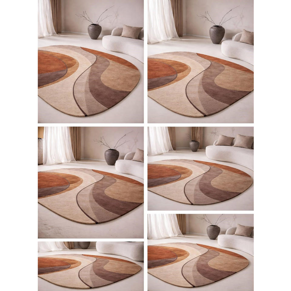 Contemporary Beige Brown Abstract Hand Tufted Round Area Rug Home Decor Christmas Gift for Living Room Bedroom Picnic Use