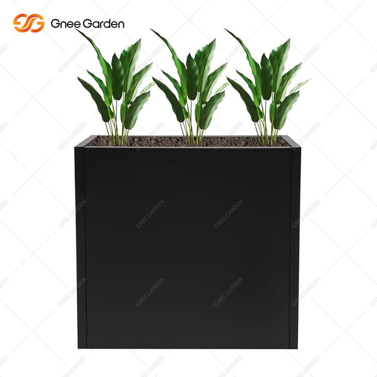 Contemporary Black Galvanized Steel Planter Outdoor Flower Pot Heavy-Duty Square Pattern American Style Garden Porch Home