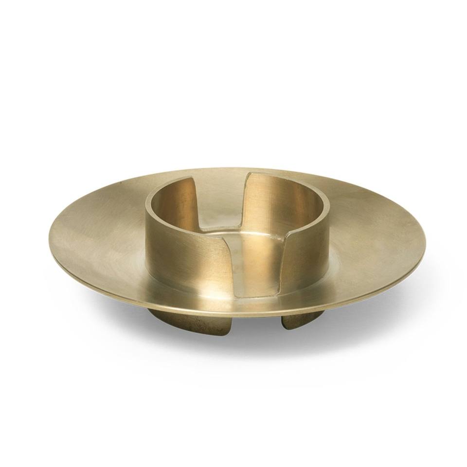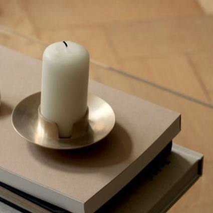 Contemporary Brushed Brass Pillar Candle Holder Minimalist Metal Round Tray Luxury Gold Candlestick Hotel Home Table Decor Art