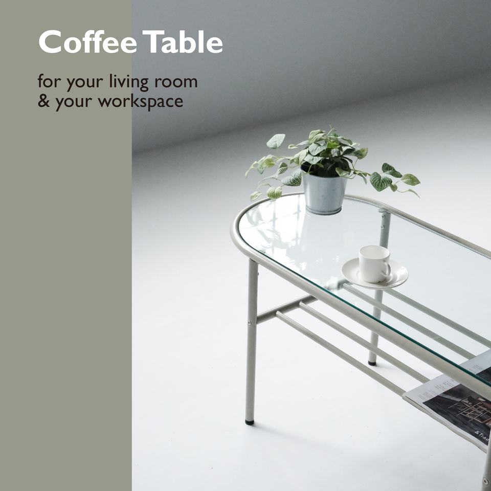 Contemporary Coffee Table for Living Room Tempered Glass Atop a Steel Base