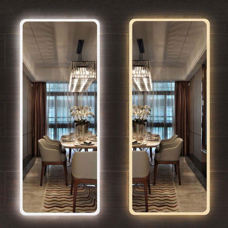 Contemporary Design Glass LED Smart Full-Length Floor/Wall Mountable Bathroom Mirror Backlit Lighting Compact Shape