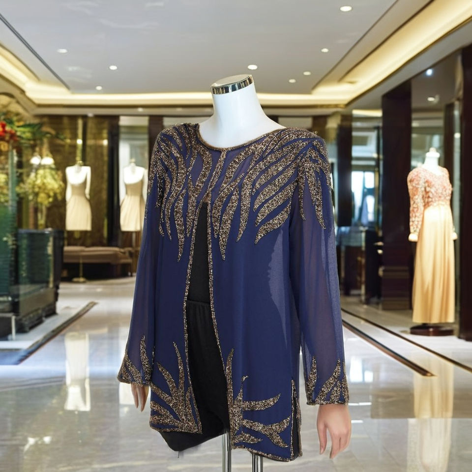 Contemporary Elegance Woman Clothing Sequined Islamic Abaya Jackets Natural Evening Party Cocktail Celebration Applique