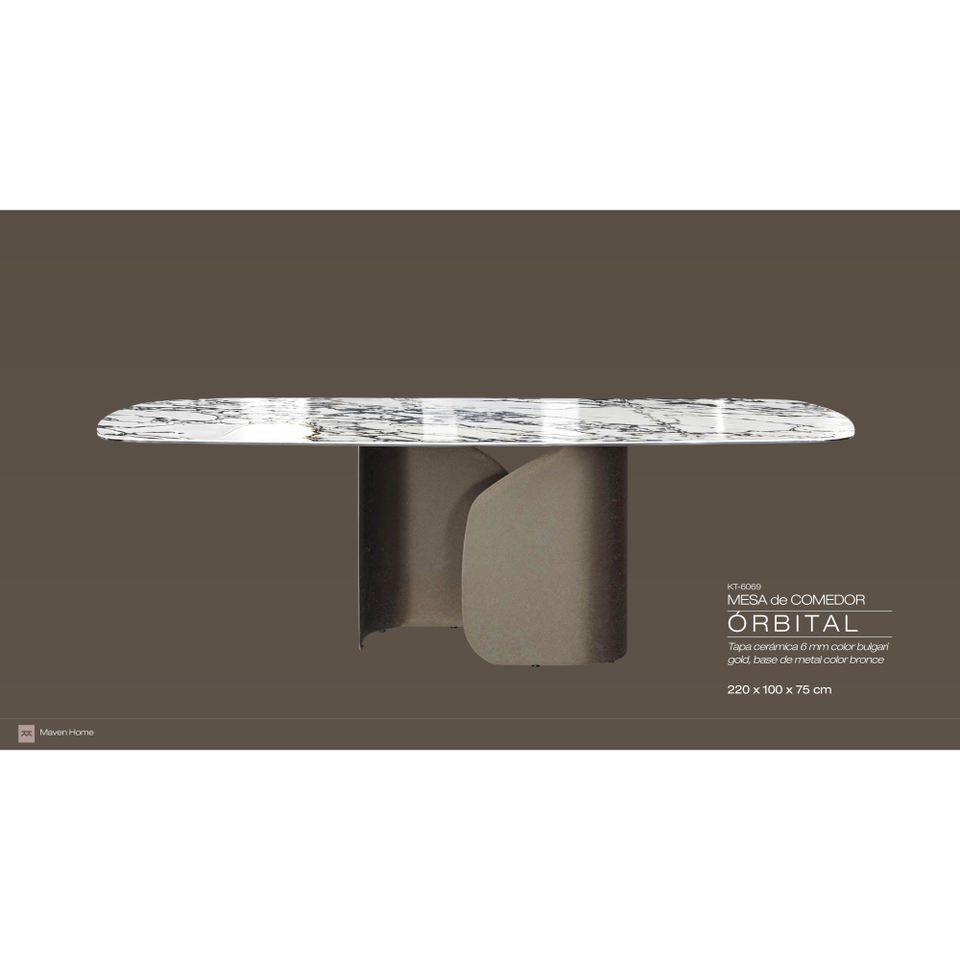 Contemporary Elegant Orbital Kitchen Table Set MESA De COMEDOR Metal and Sintered Stone for Home Office Use