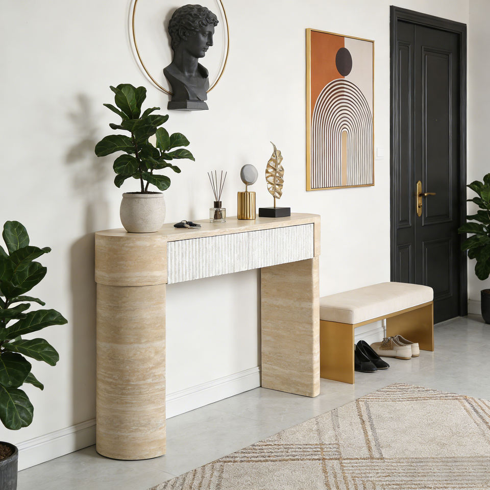 Contemporary Entryway Console Table with Two Hidden Drawers Solid Wood Easy Assembly for Hotel & Living Room Use