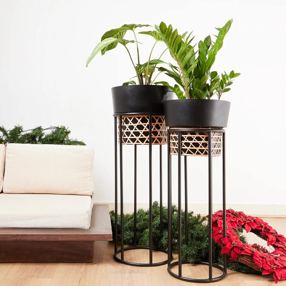 Contemporary Floor Standing Metal Planter with Elegant Brass Finishing Suitable for Indoor Corners and Patio Use