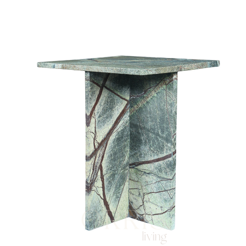 Contemporary Green Marble Nightstand Handmade Square Structure Iconic Cross Pedestal Base Modern Bedroom Dining Living Rooms