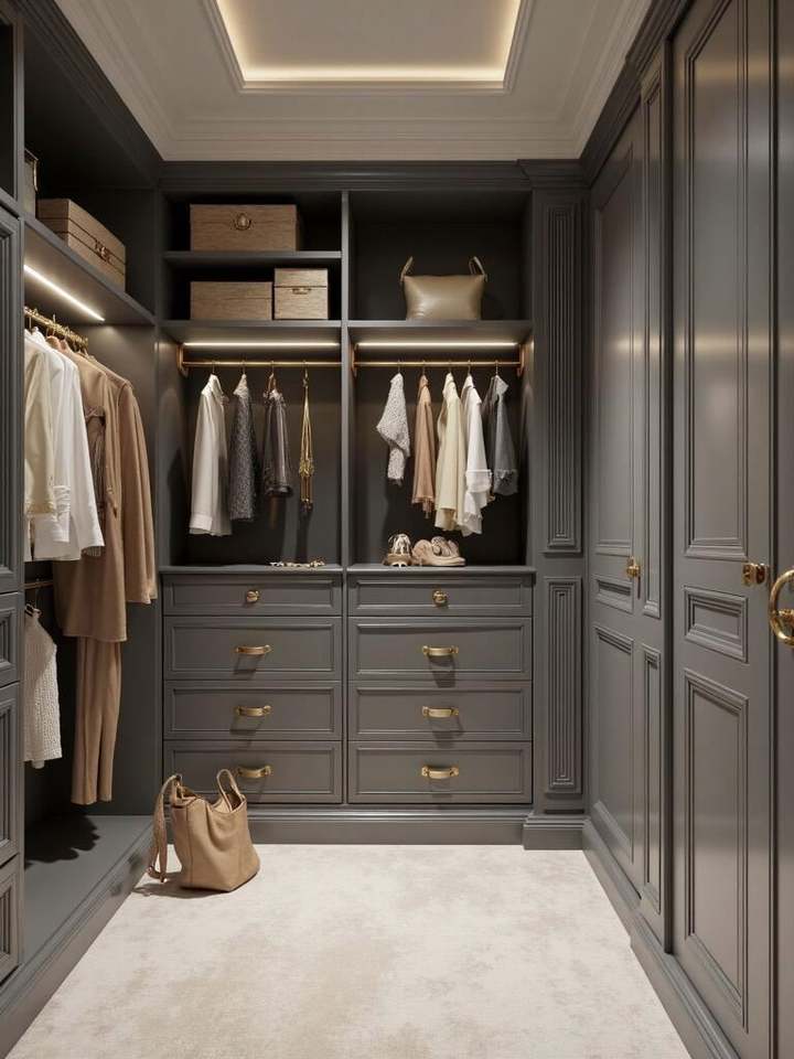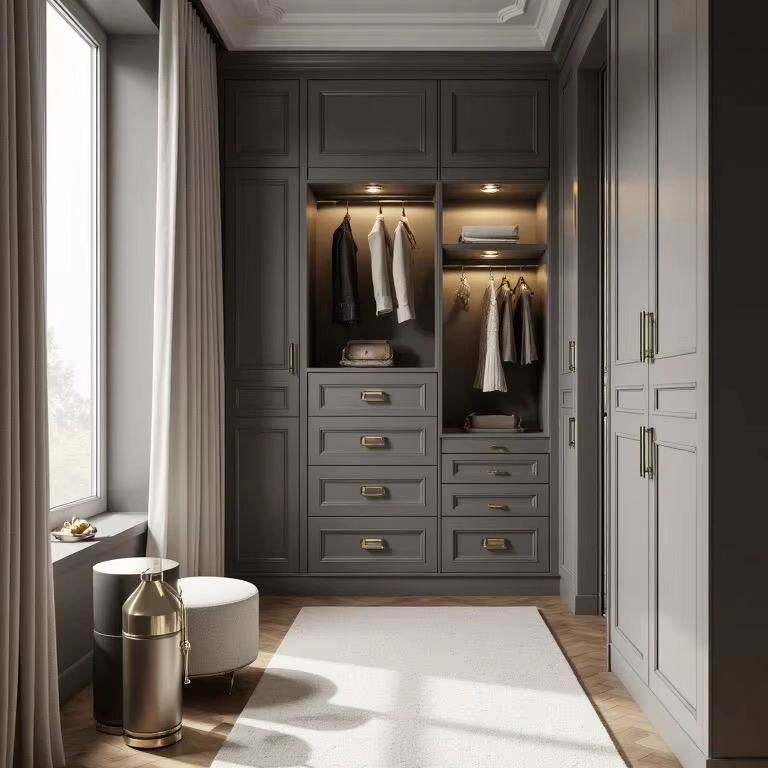 Contemporary Grey Solid Wood Walk-in Closet for Apartment and Villa Modern Bedroom Wardrobes