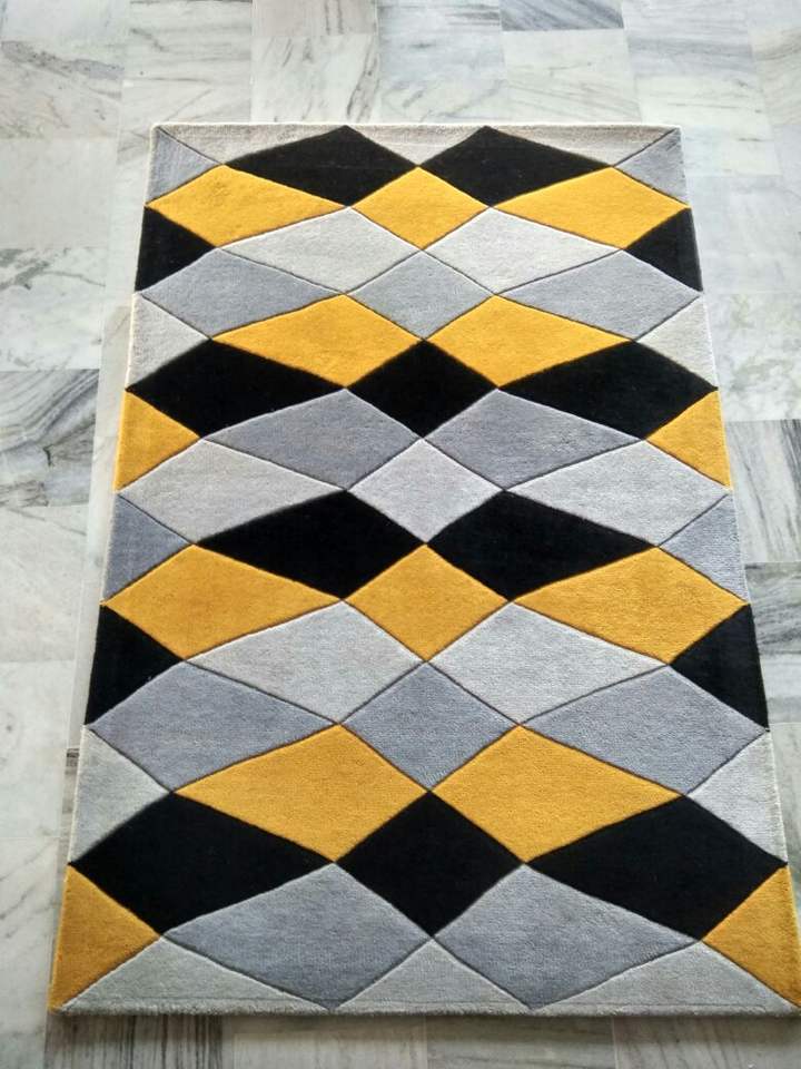 Contemporary Hand-Tufted Wool Rug Modern Geometric Diamond Pattern Carpet Black Yellow Gray Hand Carved Embossed Area Rugs Sets