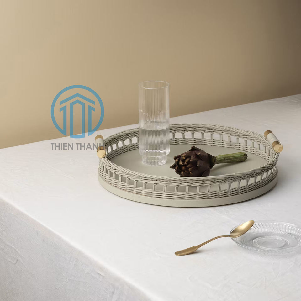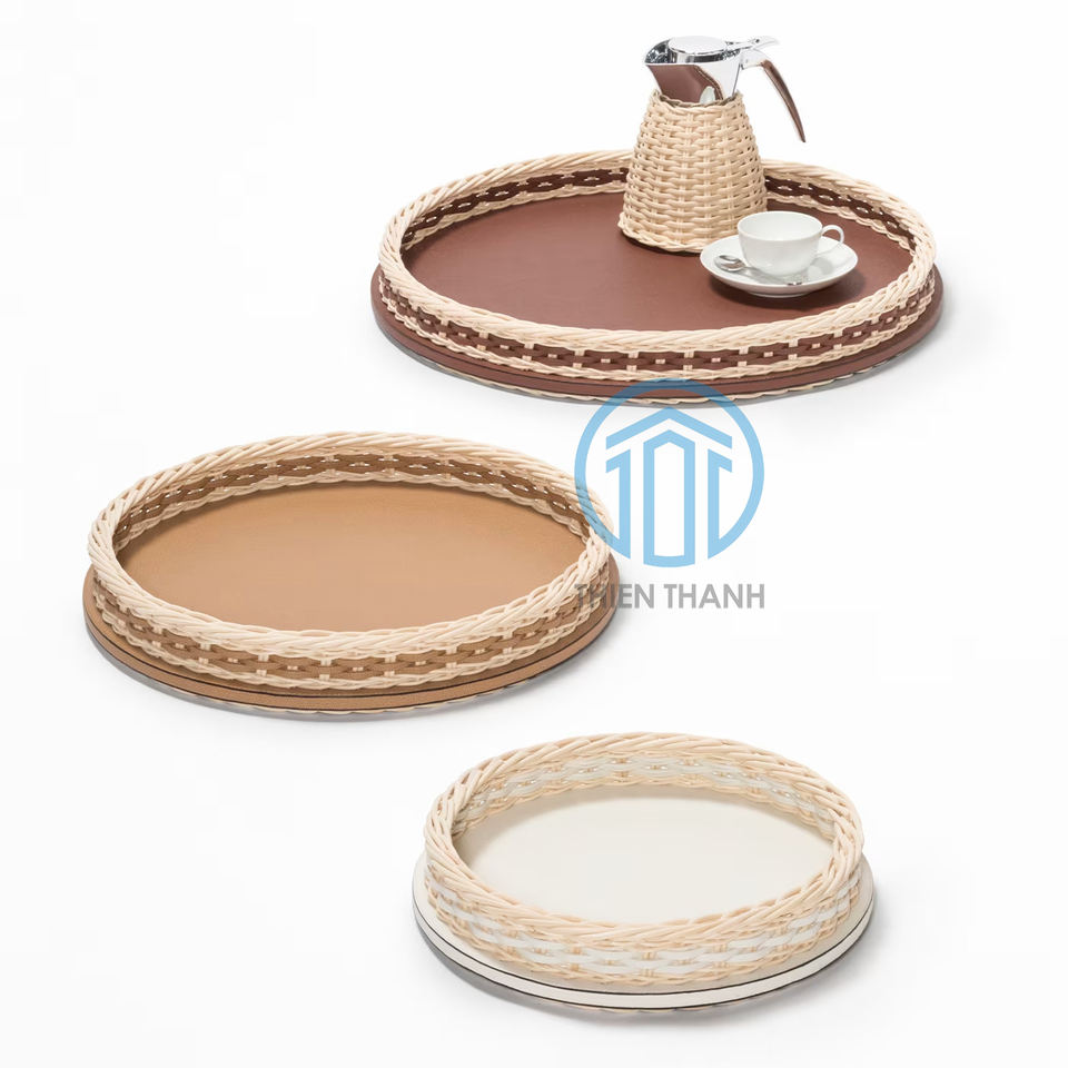 Natural lacquer and rattan serving trayProduct Name