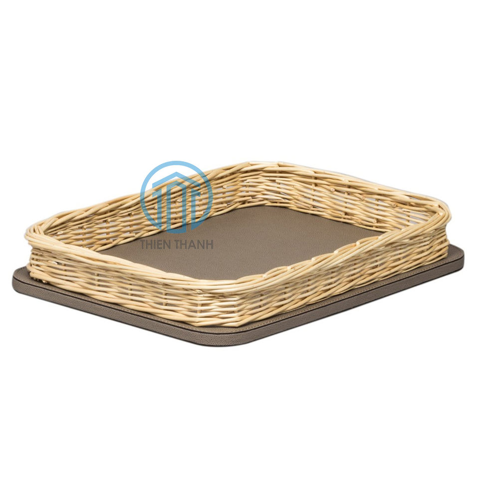 Contemporary Hot Trend Rectangular Lacquered Rattan Serving Trays Elegant Rattan Mixed Lacquer Decorative Tray From Vietnam