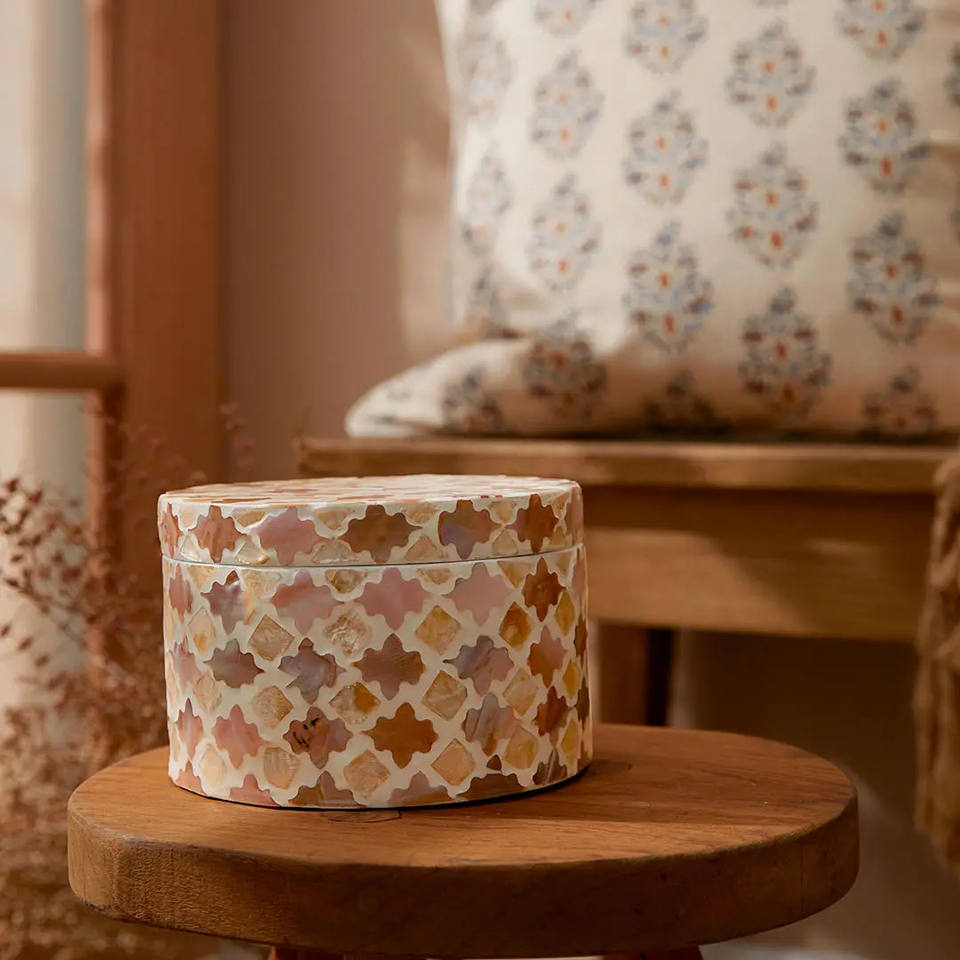 Contemporary Look Decorative Mother of Pearl Round Jewelry Box for Storing Trinkets or Styling and Home Decor Capiz Boxes