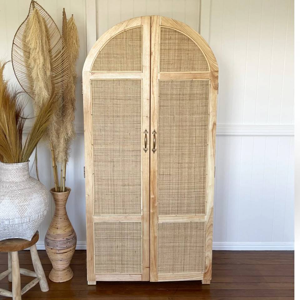 brand name:Curved Mindi Wardrobe with 2 Rattan Doors